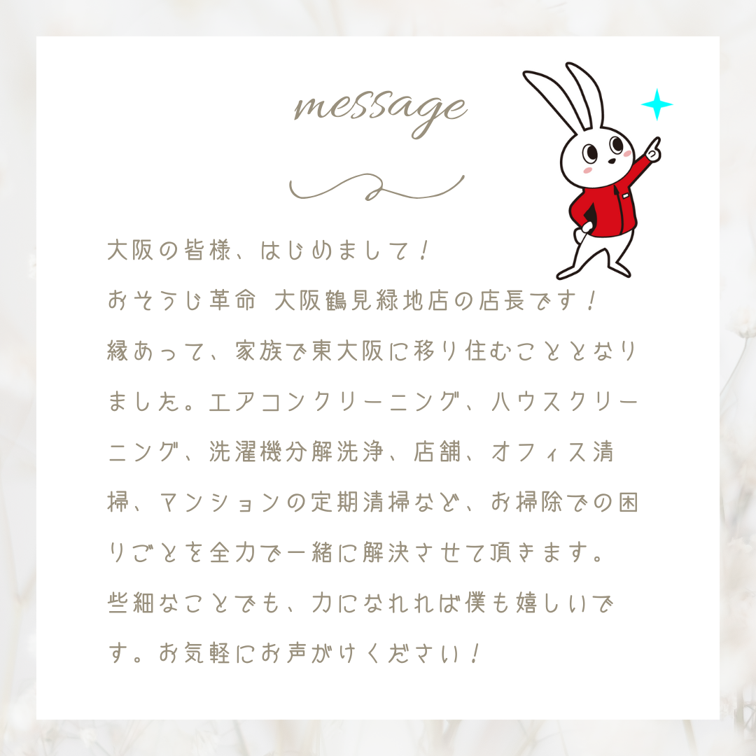 大阪の皆様、はじめまして!店長紹介【おそうじ革命 大阪鶴見緑地店】