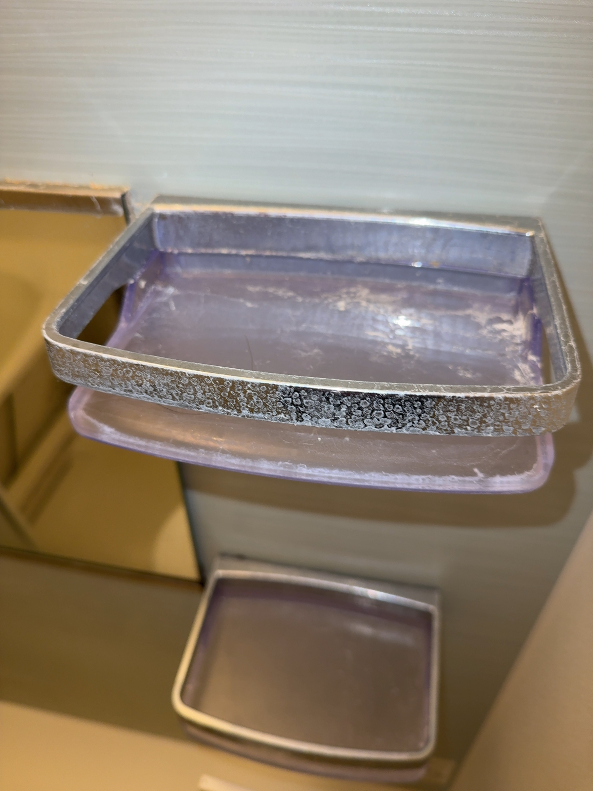 水垢は、酸性洗剤と、研磨し、床の黒ずみは、金属石鹸カス汚れでしたので、専用の洗剤でしっかりキレイになりました✨