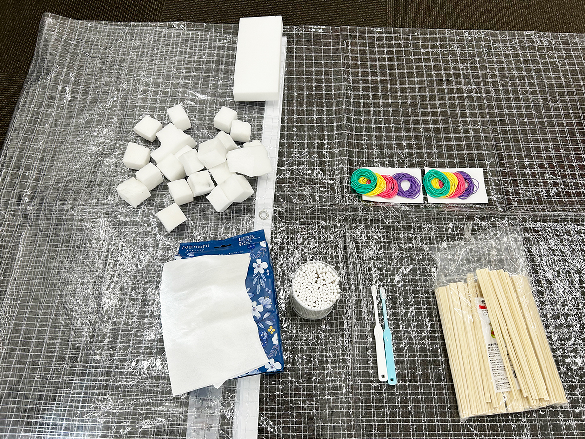 さらに、割りばしやキッチンペーパー、スポンジなどを使い、