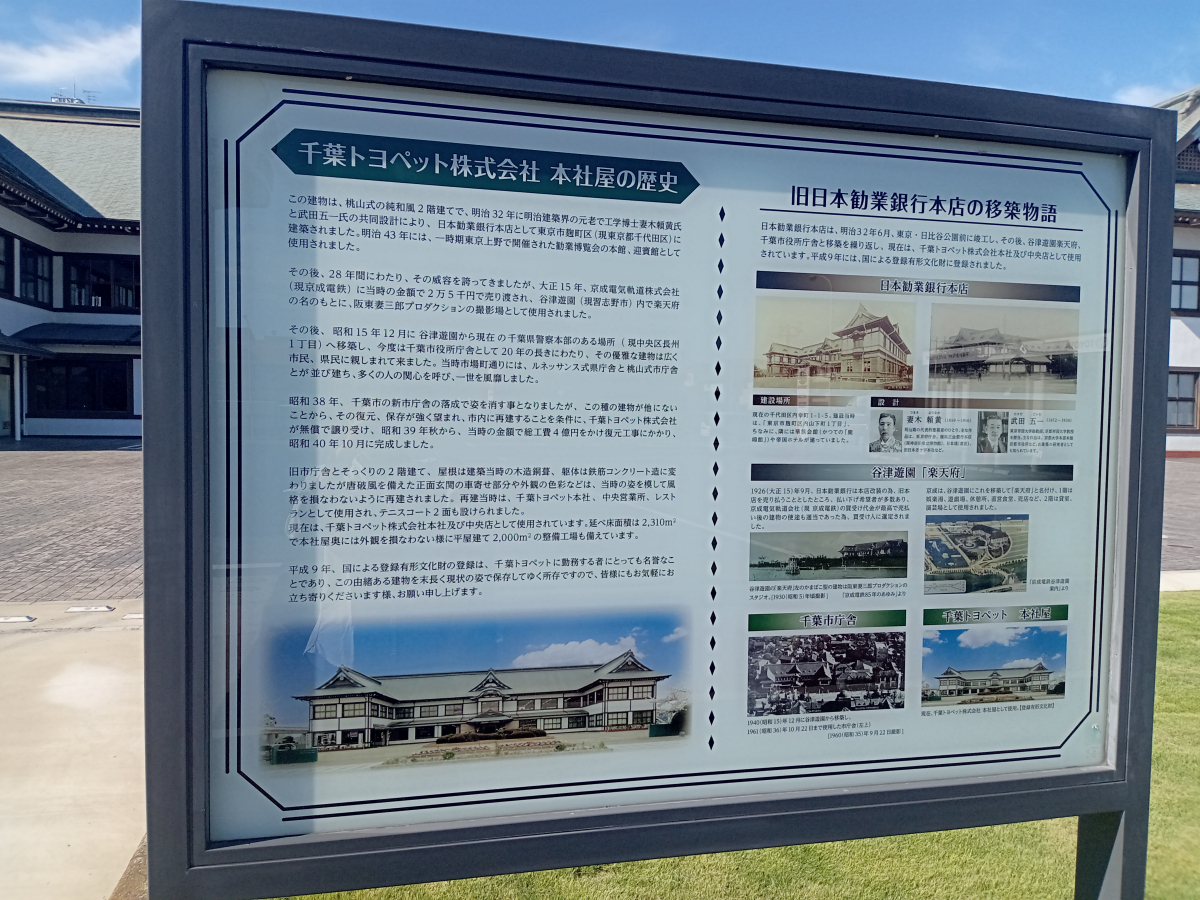 再利用はまだまだ続き、昭和に入ってから千葉市の市庁として、これまたうわものだけお引越しで利用され、さらに今から60年くらい前に千葉トヨペットという会社にうわものだけ払い下げれて、現在に至るのだそうです。