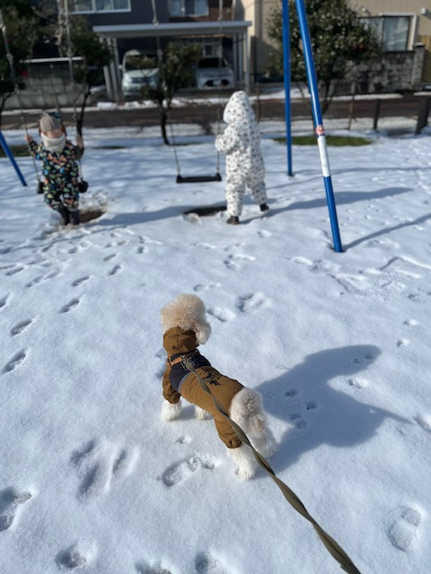 思い腰を上げてやっと着替えて着替えさせてワンコロも着替えさせ、いざ!お散歩に(これだけで自分を褒めたい)