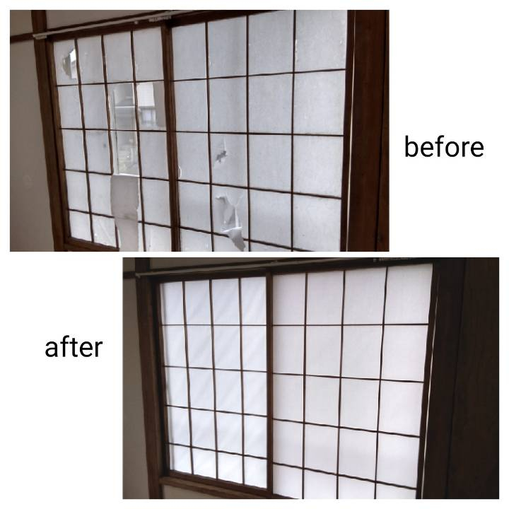 障子戸の張替え、網戸の張替えも行います。空室清掃と一緒にご依頼頂けます。もちろん障子、網戸張替えのみのご依頼もお待ちいております。