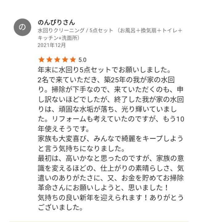 今年の仕事納めはレンジフードクリーニング、お客様から嬉しい口コミ投稿を頂きました。