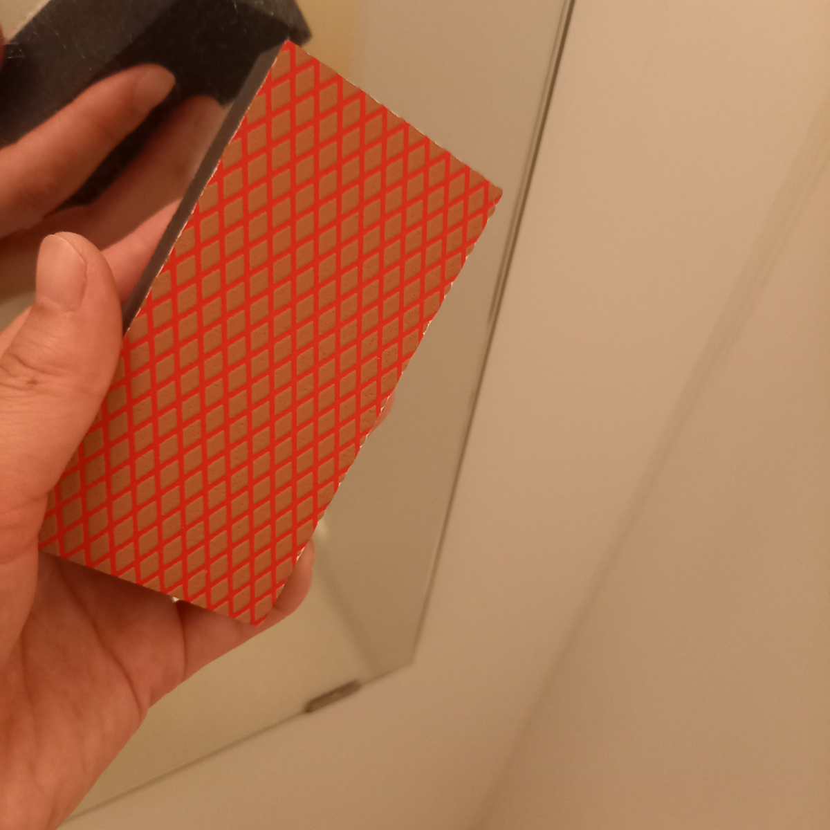 ※ダイヤモンドパッドは研磨力が非常に強いので、水を流しながら擦らないと、鏡に傷が付いてしまうので要注意!!