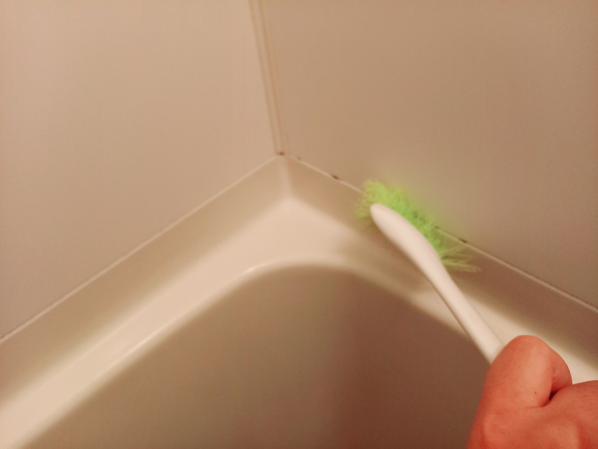 ※カビ表面をブラシで削るイメージでこすってあげるとカビの組織の表面が傷つき内部まで洗剤が浸透しやすくなります。