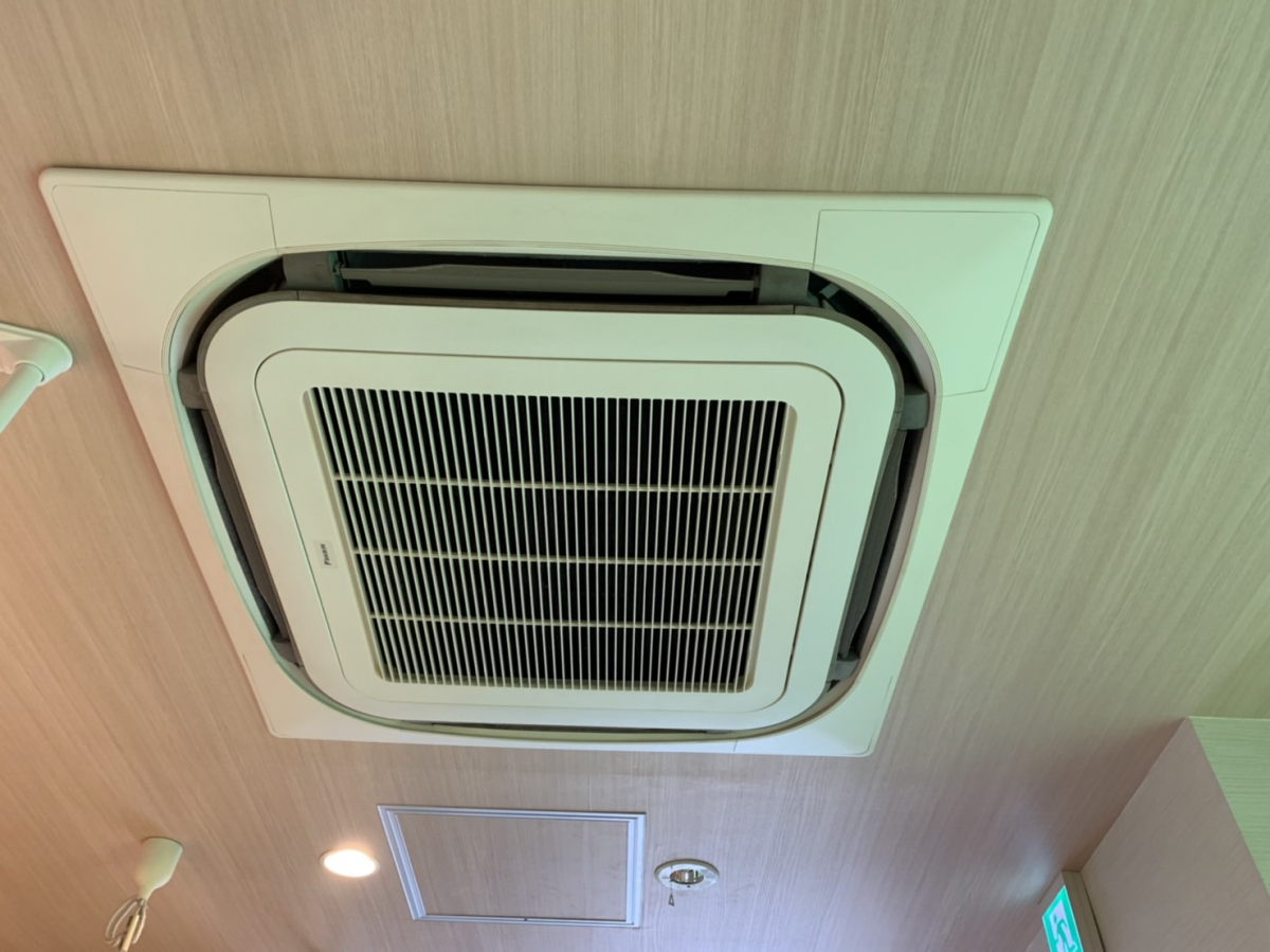 東久留米市にて、歯医者業務用エアコンクリーニング 天井埋め込み型4方向