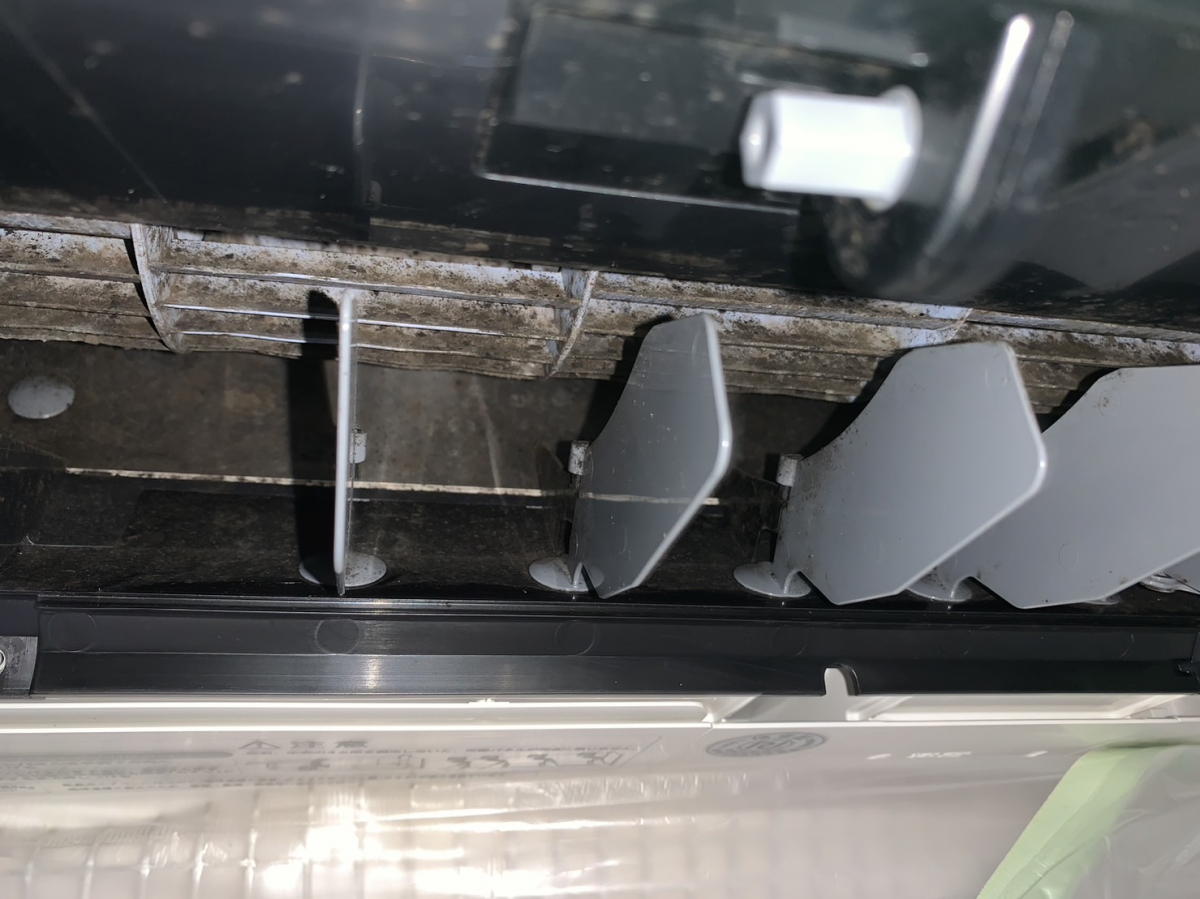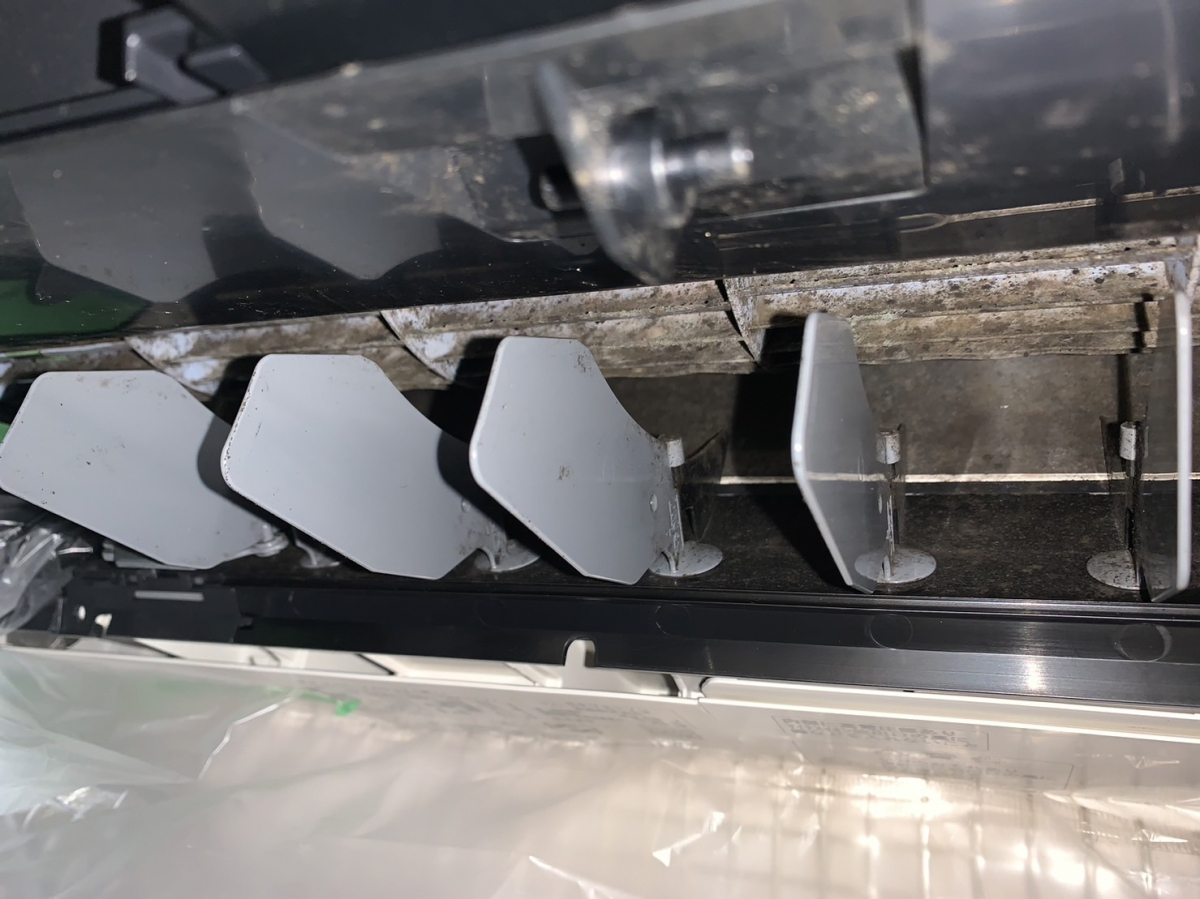 内部はこのように汚れております。特に下のファン部分がカビがすごいですね。