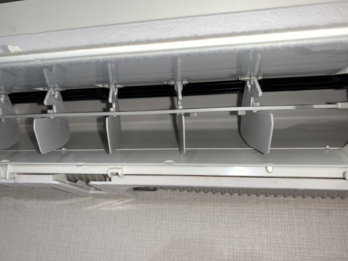 お伺いしてすぐエアコンを確認するとエアコン前面可動パネルが開いたままになっております。