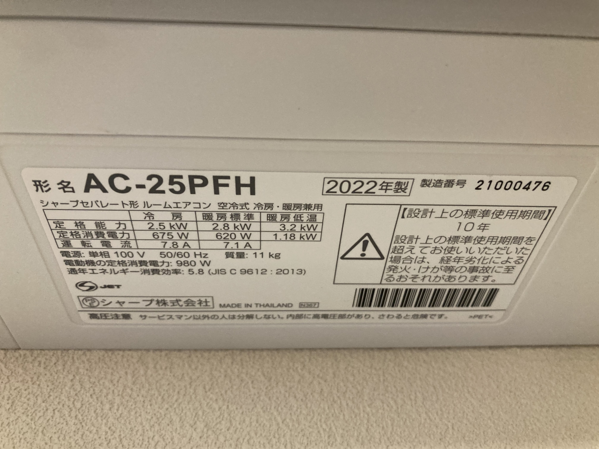 2022年製のエアコンですので、比較的新しめのエアコンです。