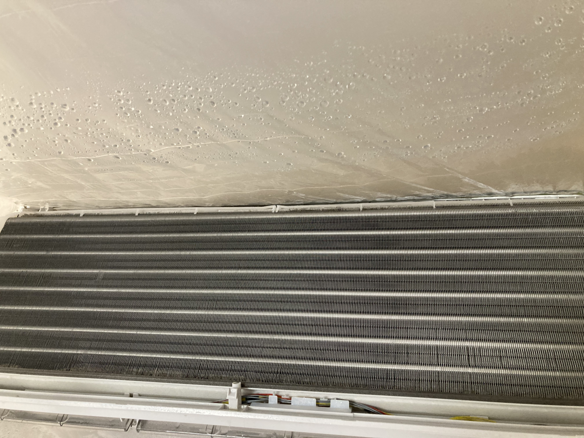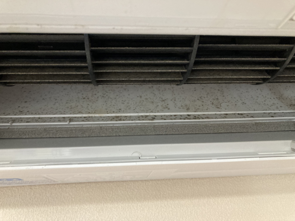 熱交換器の部分はホコリがビッシリですね。吹き出し口の辺りにはカビも発生しています。