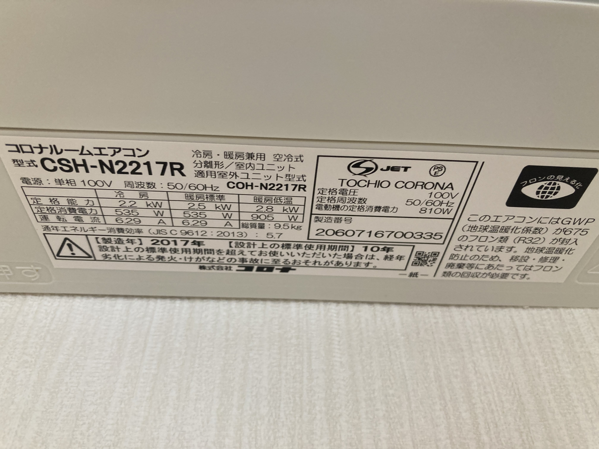 コロナエアコン CSH-N2217R×3台