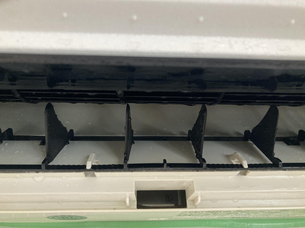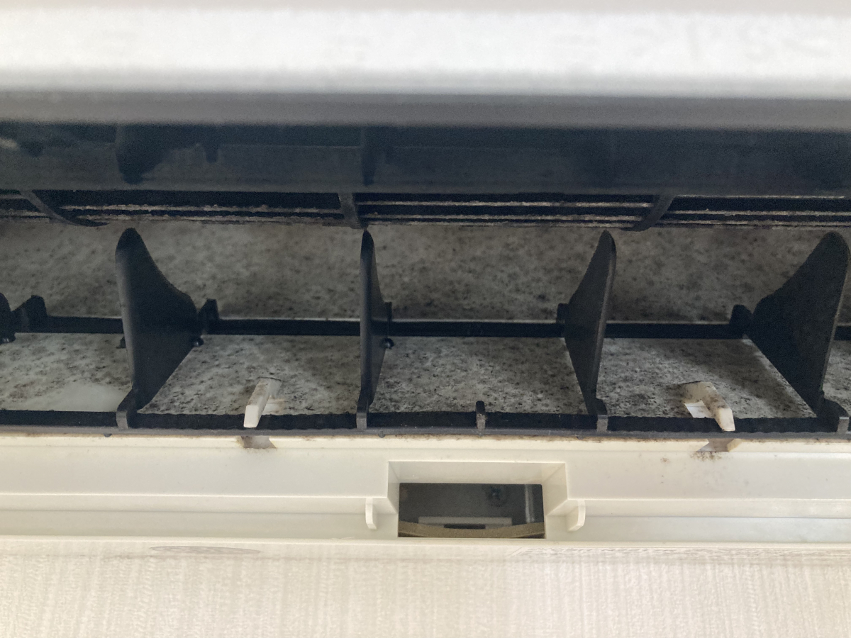 真っ黒ですね。エアコンの内部はどうしてもカビ・ホコリで汚れてしまいます。こればかりはなかなか防ぎようがありません。定期的なクリーニングで綺麗な状態を保っていきましょう。