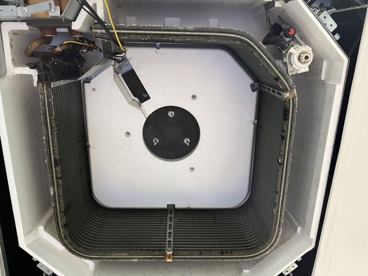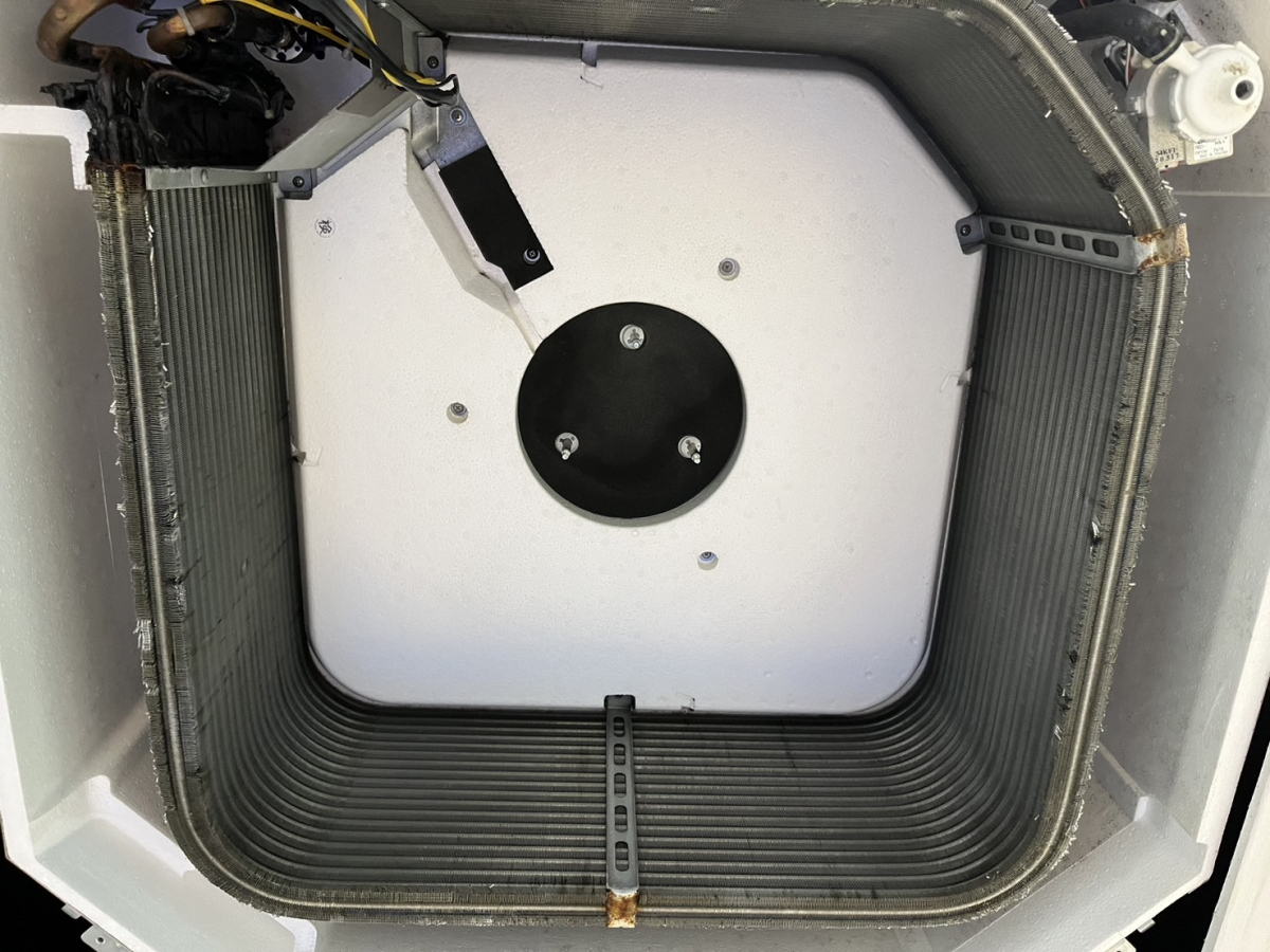 汚れの状況は入り口の箇所ともあり、フィルターにどっさりほこりが付着しており、内部熱交換器はうっすらカビが繁殖始まって来ております。
