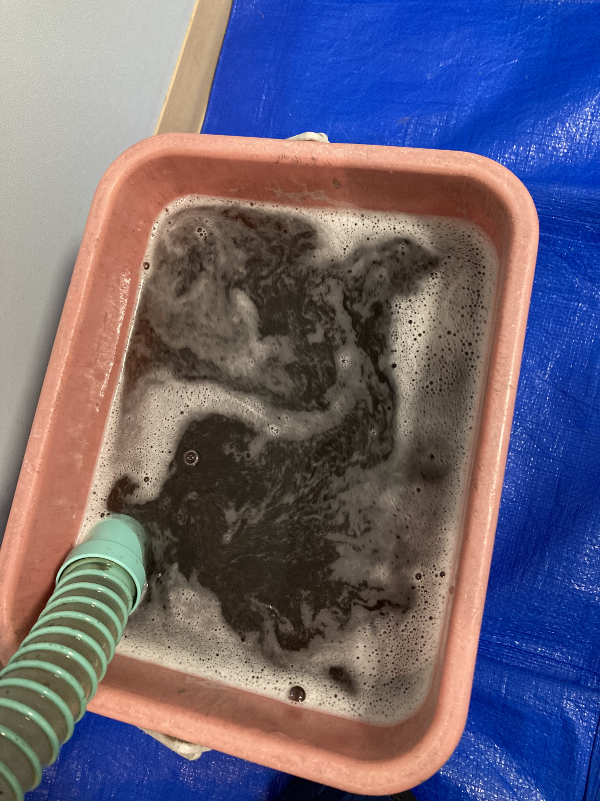 汚水を見ていただければ分かりますが、今回のオフィスのエアコンもやはり汚れておりました。1年でもこの汚れです。汚れたエアコンを使用した空間で仕事をするのは気持ちよくはないですよね。是非ともおそうじ革命西東京店までご一報ください。快適空間をプロデュースいたします。