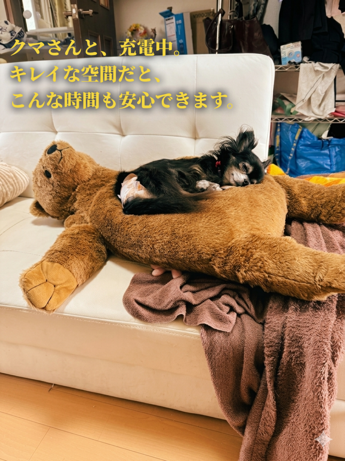写真のチワワのように、ペットが心から安心して無防備に眠れる、そんなクリアな空気環境をお届けします。
