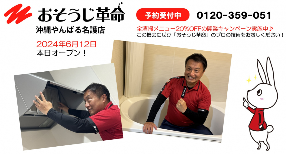 【おそうじ革命 沖縄やんばる名護店】6月12日、本日オープンのお知らせ