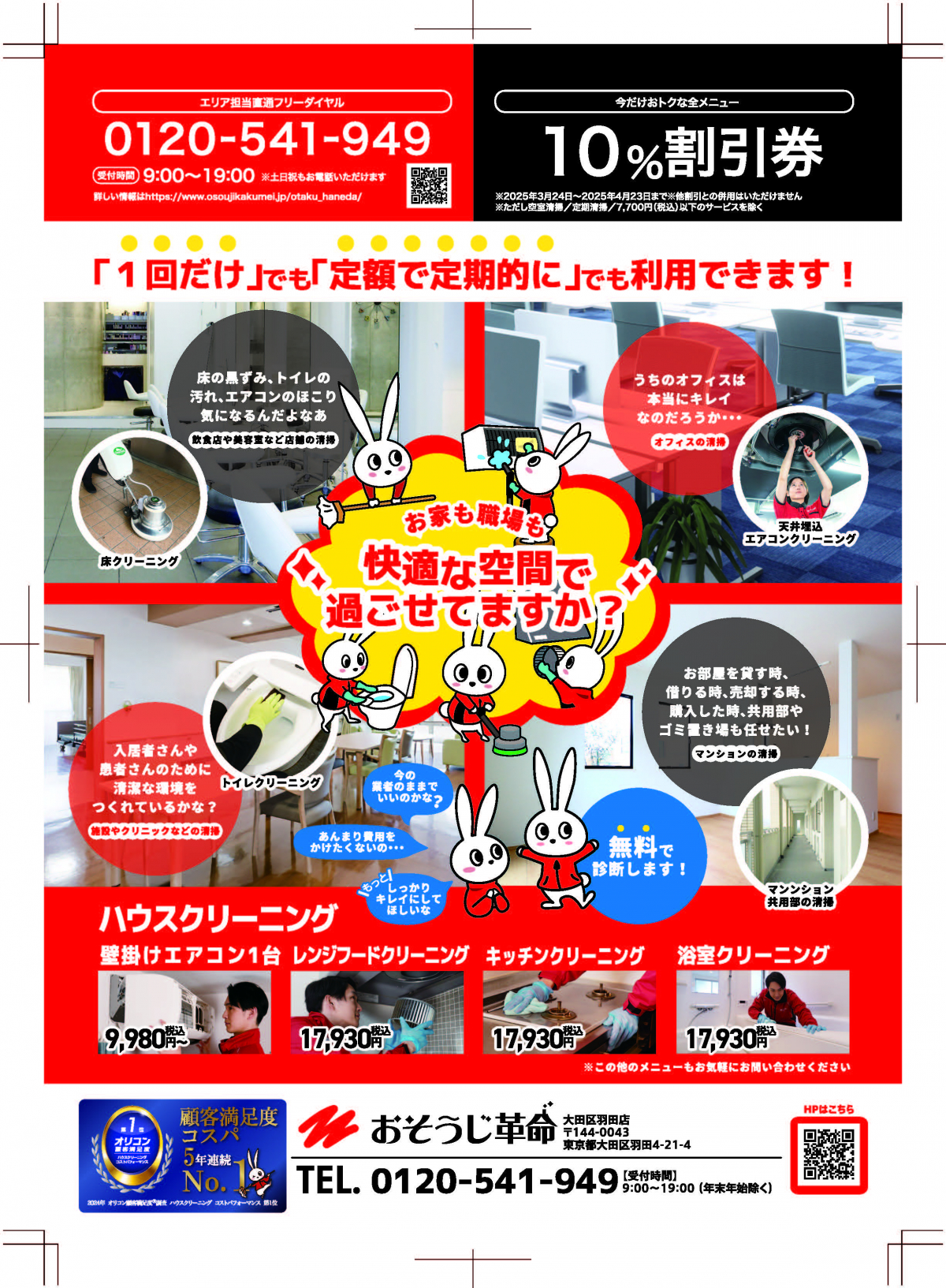 おそうじ革命 大田区羽田店の山岡です。