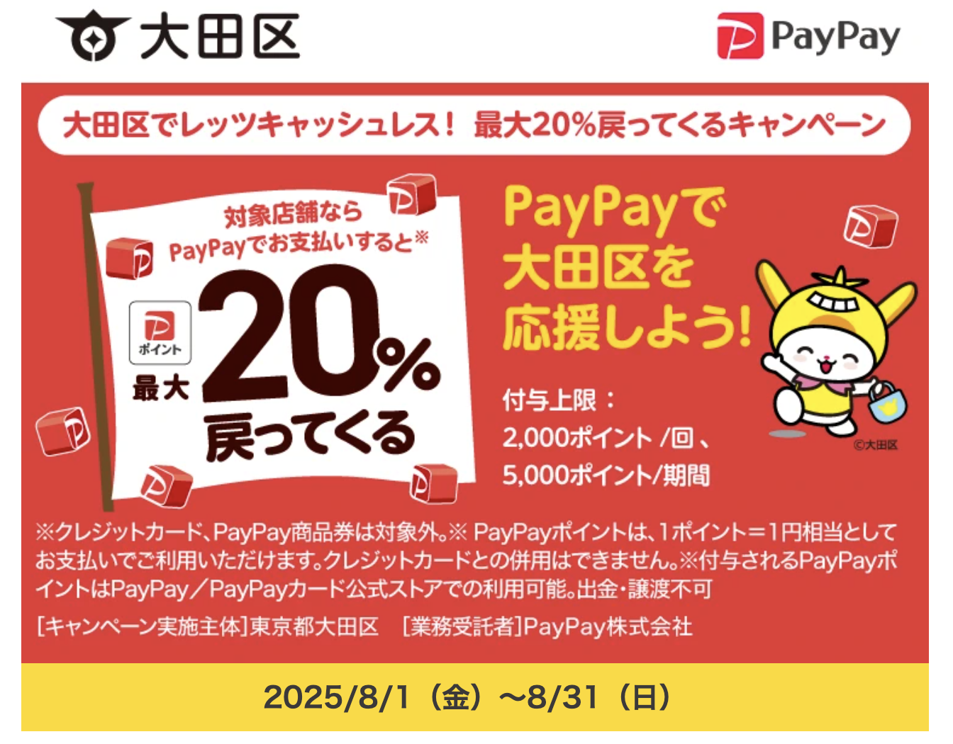 大田区PayPayキャンペーン8月31日まで実施中!