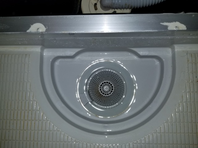 最初にカビプロでつけおきしておいた、エプロン内部を清掃していく。