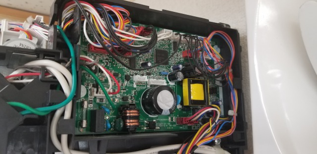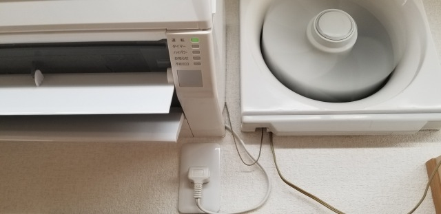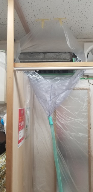 マスカーを今一度エアコンにかぶせて(動作確認時に水がたれるのを防止)