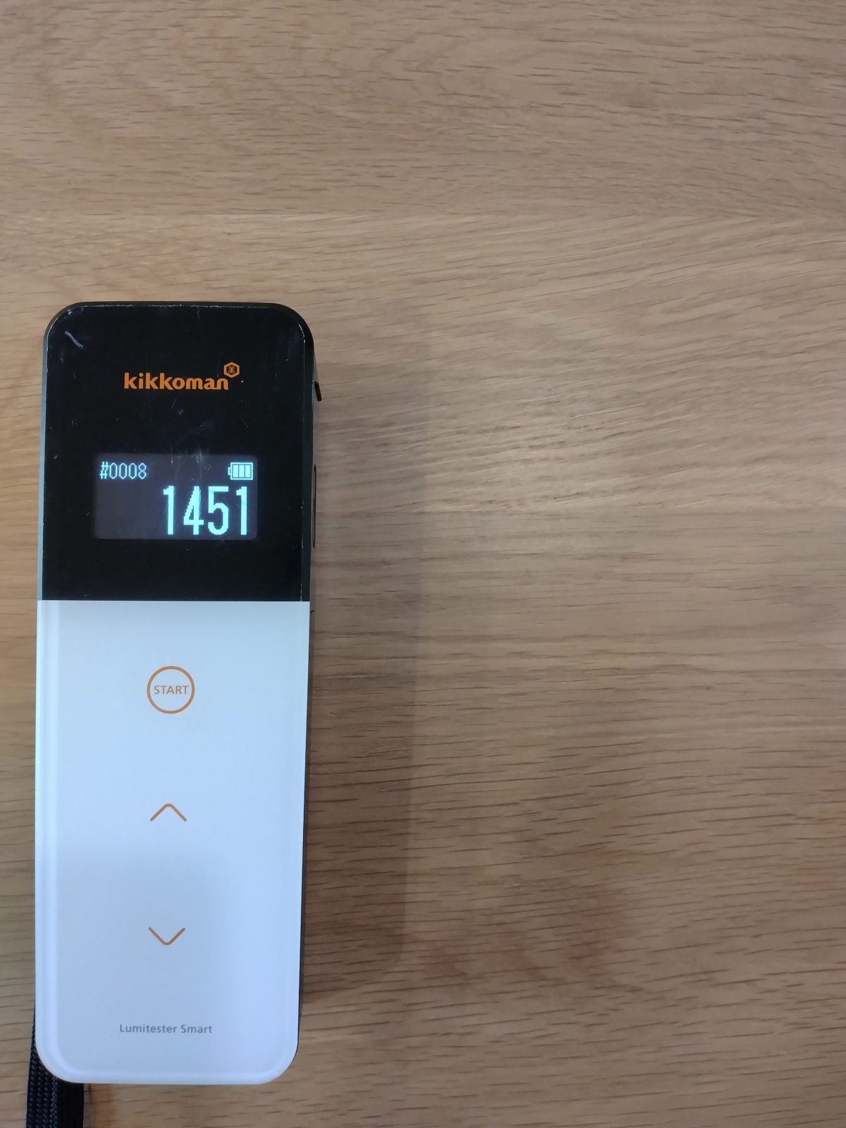 ケスキン施工後、2時間後に再度ルミテスターで細菌•ウイルスの残存数をチェック!