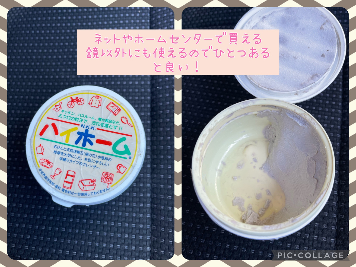 鏡の場合も同様でひたすらに擦って水垢を落として行きます。