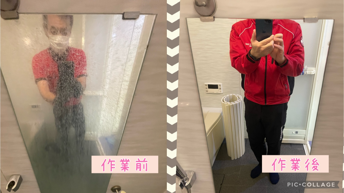 お任せください!浴室クリーニング15400円で鏡の研磨も含めて浴室全体をキレイにさせていただきます!