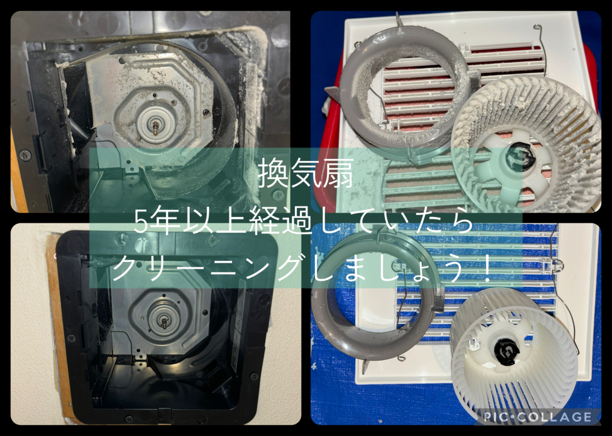 以前に20年以上経過した換気扇で異音があり、クリーニング後にお客様が換気扇のスイッチが入っていないと思ったくらい静かになったこともありました。