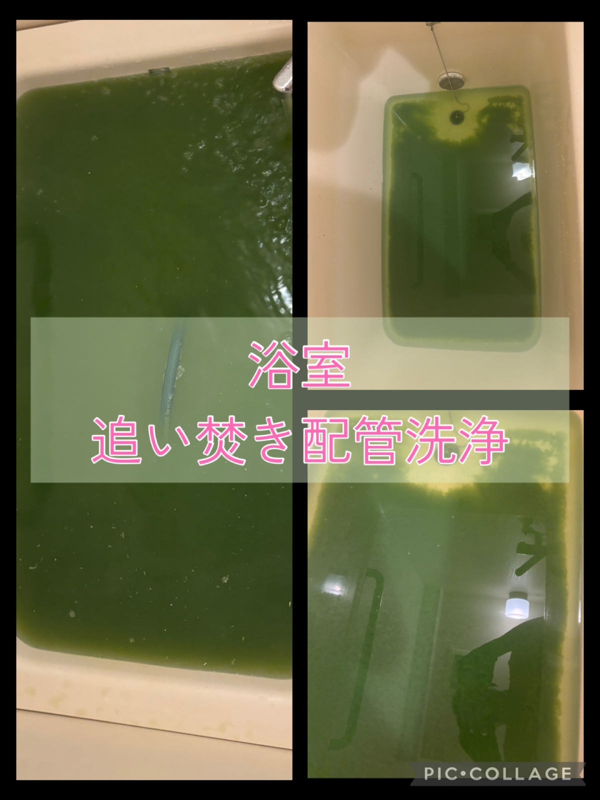 水の色がすごいことになってますが、これは薬剤と汚れ成分が反応している色なので、配管にこれが詰まっている訳ではございません。ご安心を。