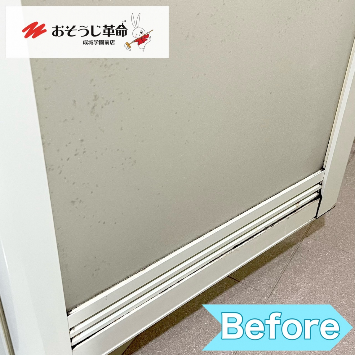 扉に付いたカリカリの水垢は、排水口掃除と並ぶぐらいみなさんお困りになっています。