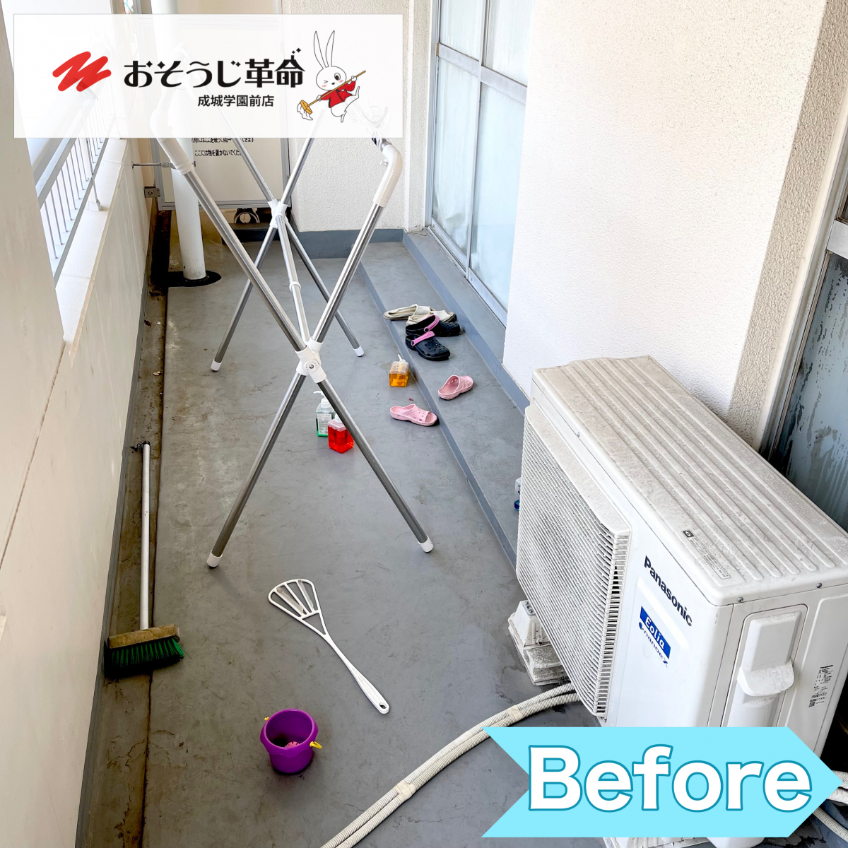 バルコニーはどこのご家庭でも、排気ガスとか砂の汚れが溜まっちゃいますよね…。