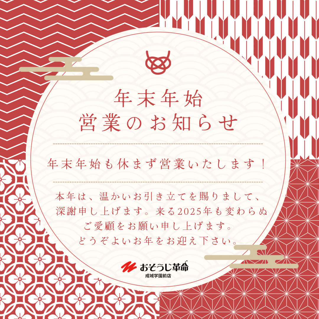 いつも「おそうじ革命 成城学園前店」のハウスクリーニングサービスをご利用いただき、誠にありがとうございます。