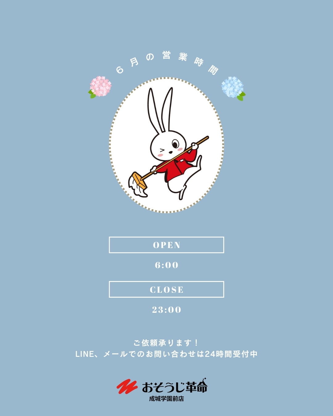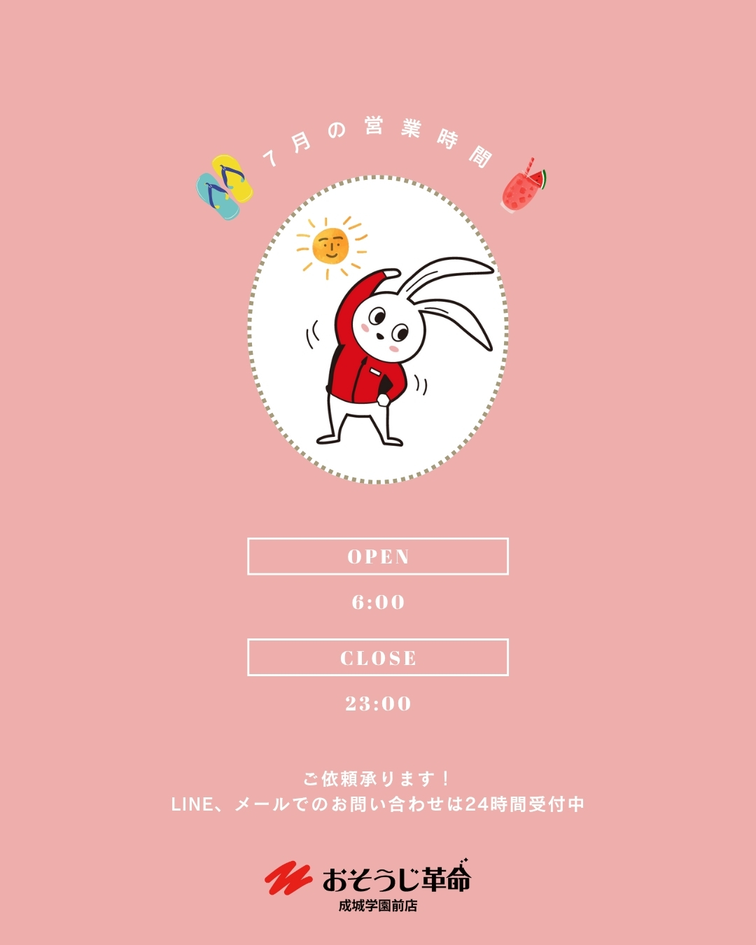 ハウスクリーニングをご検討中のお客様へ:7月の営業時間のお知らせ