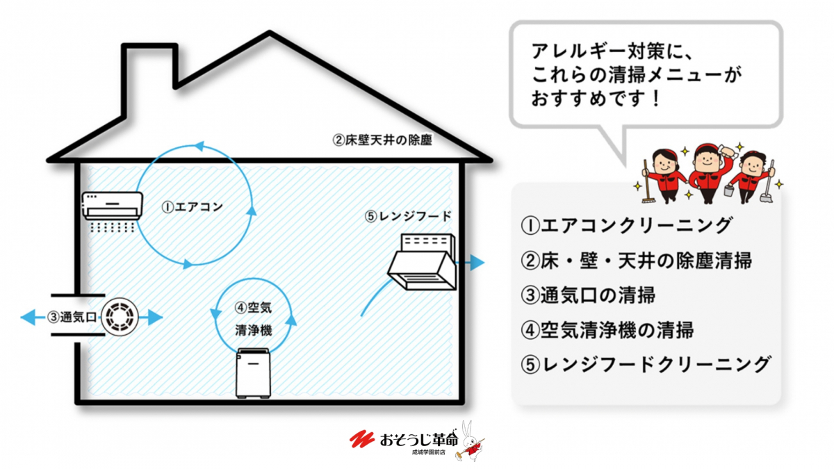 カビやダニは、ぜんそくやアトピー性皮膚炎、アレルギー性鼻炎などのアレルギー症状を引き起こす原因にもなります。