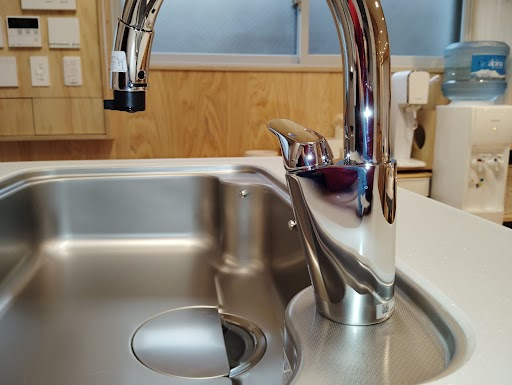シンク内の水垢に含まれるカルシウムなどのミネラル分はアルカリ性のため、酸性の洗剤を使用し中和させ、キッチン用ブラシなどで擦り汚れを落とします。