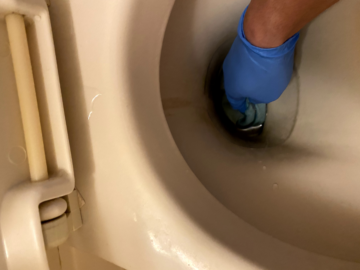 洗剤をトイレットペーパーに染み込ませてつけおく
