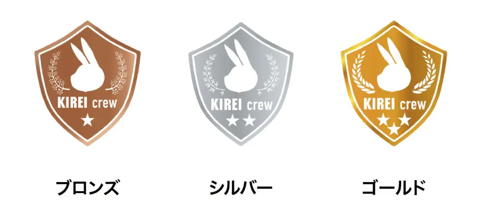 お客様が注文し、KIREI crew が清掃実施。清掃後にお客様がアンケートに回答し、クルーにフラッグが付与される流れを示す図。