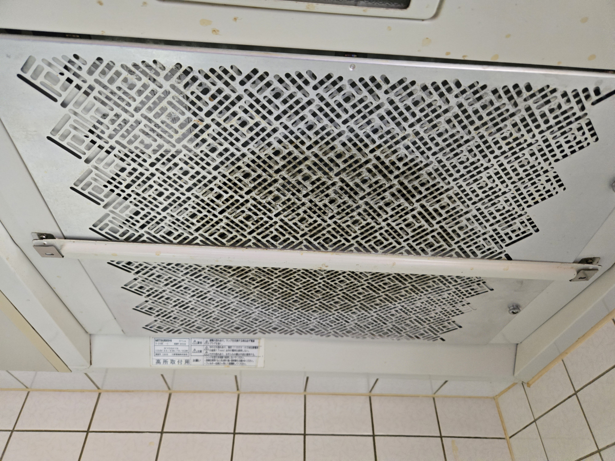 レンジフードのフィルターは、そのまま使用するとこんな感じの汚れがついてしまいますよね。