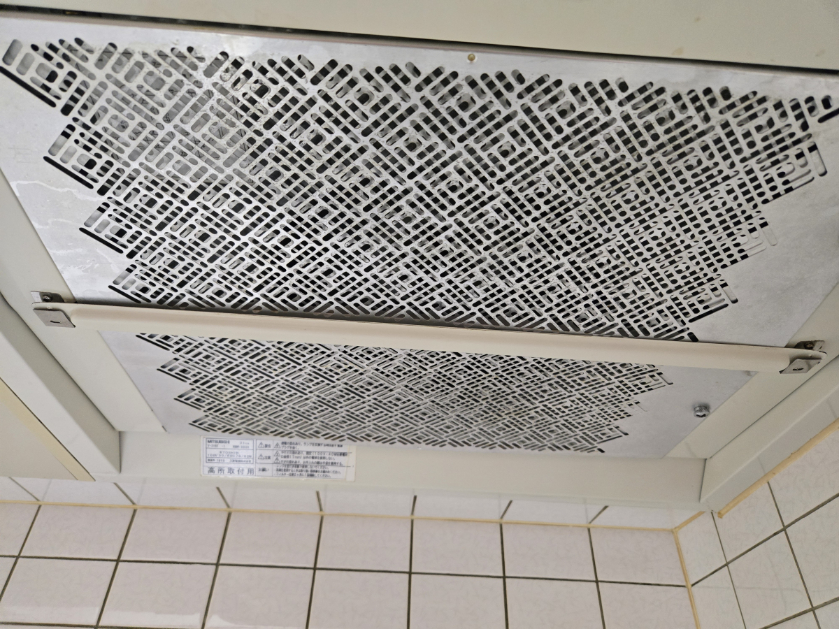 レンジフードは分解して内部にあるシロッコファンも洗浄しますが、この日は物理的に分解することができなかった為、フィルターや細かな部品のみ分解して洗浄を行いました。