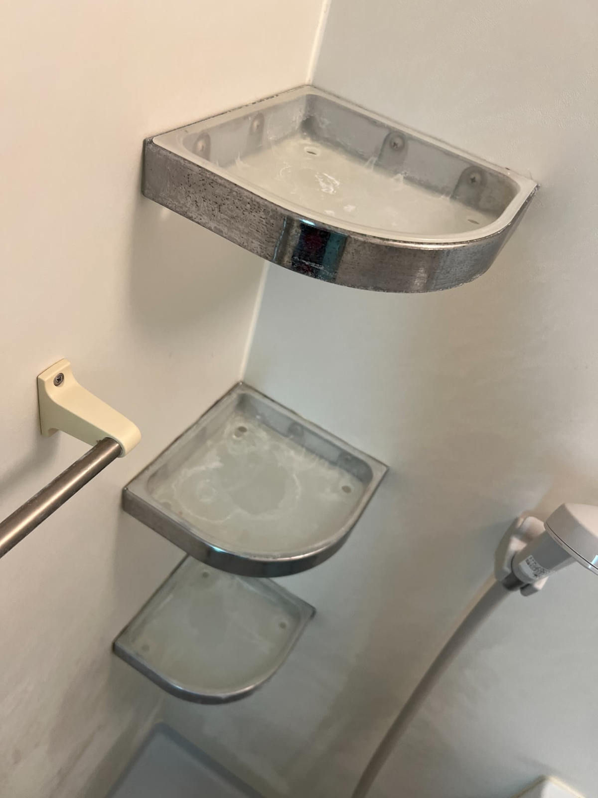 金属石鹸と呼ばれる、「石鹸カス」「皮脂」「水垢」が複合した汚れがびっしり。