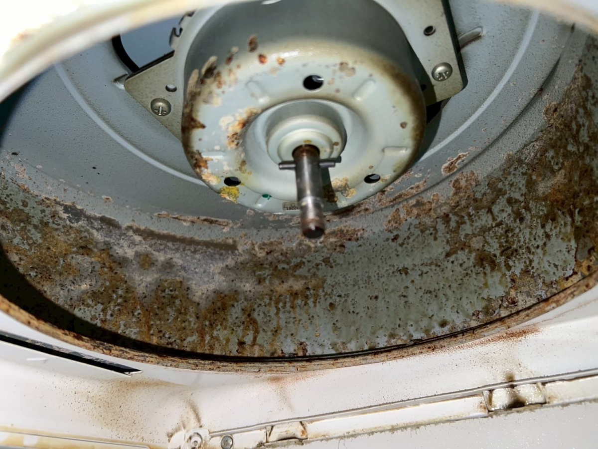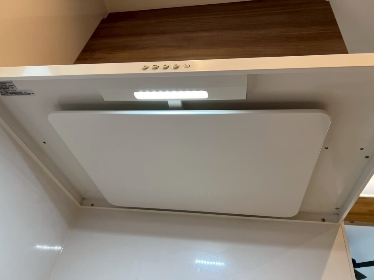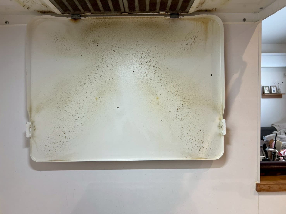 きれいな白色のレンジフードでしたが油がついて残念なことに・・