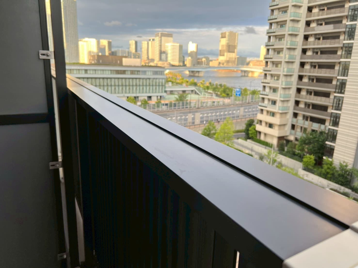 まずは高いところから手すりの部分や室外機、給湯器の外側もキレイにしていきます。