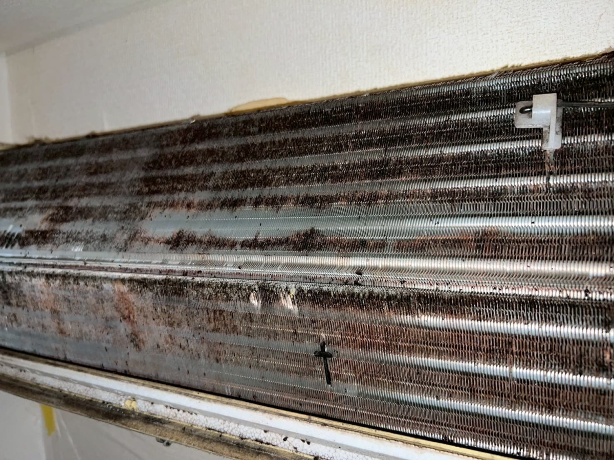 黒ずんでしまっていた熱交換器やカビだらけで真っ白になってしまっていたファンも