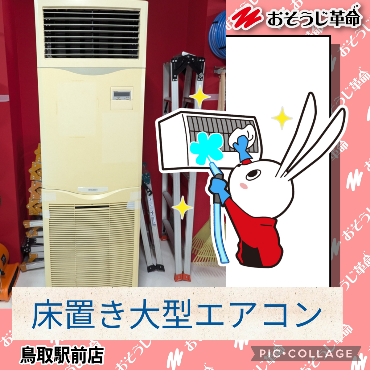 おそうじ革命鳥取駅前店では床置き大型エアコン、壁埋め込みエアコン、天吊りエアコン、天井埋め込みエアコン、天カセエアコンのクリーニング、新規入れ替え、新規交換も行っています。