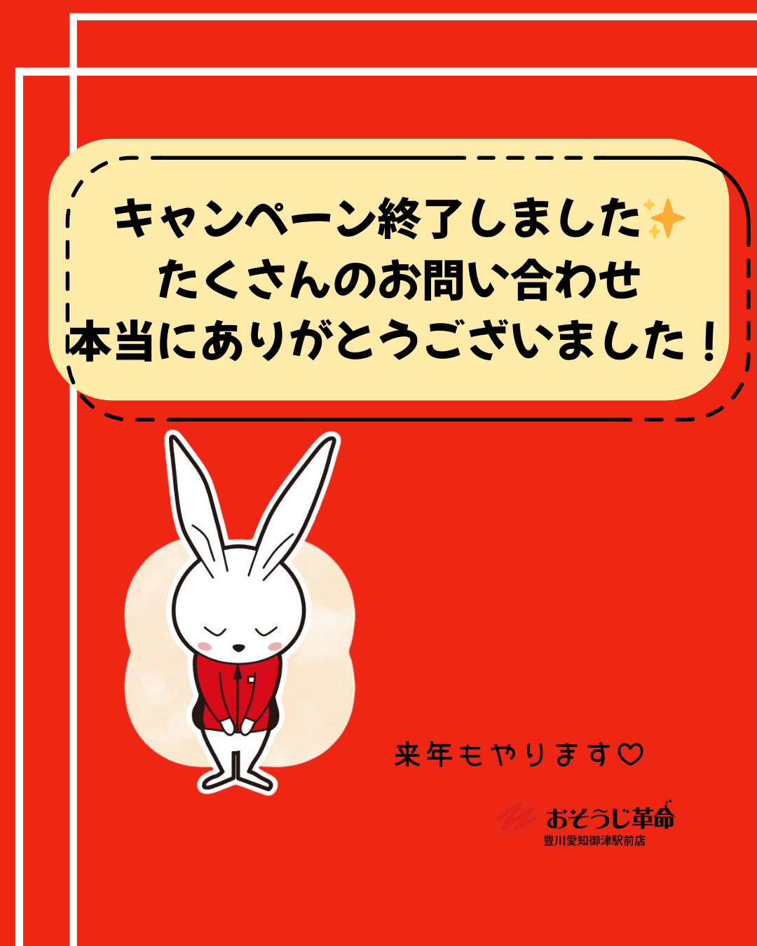 おそうじ革命豊川愛知御津駅前店の小浦です✨