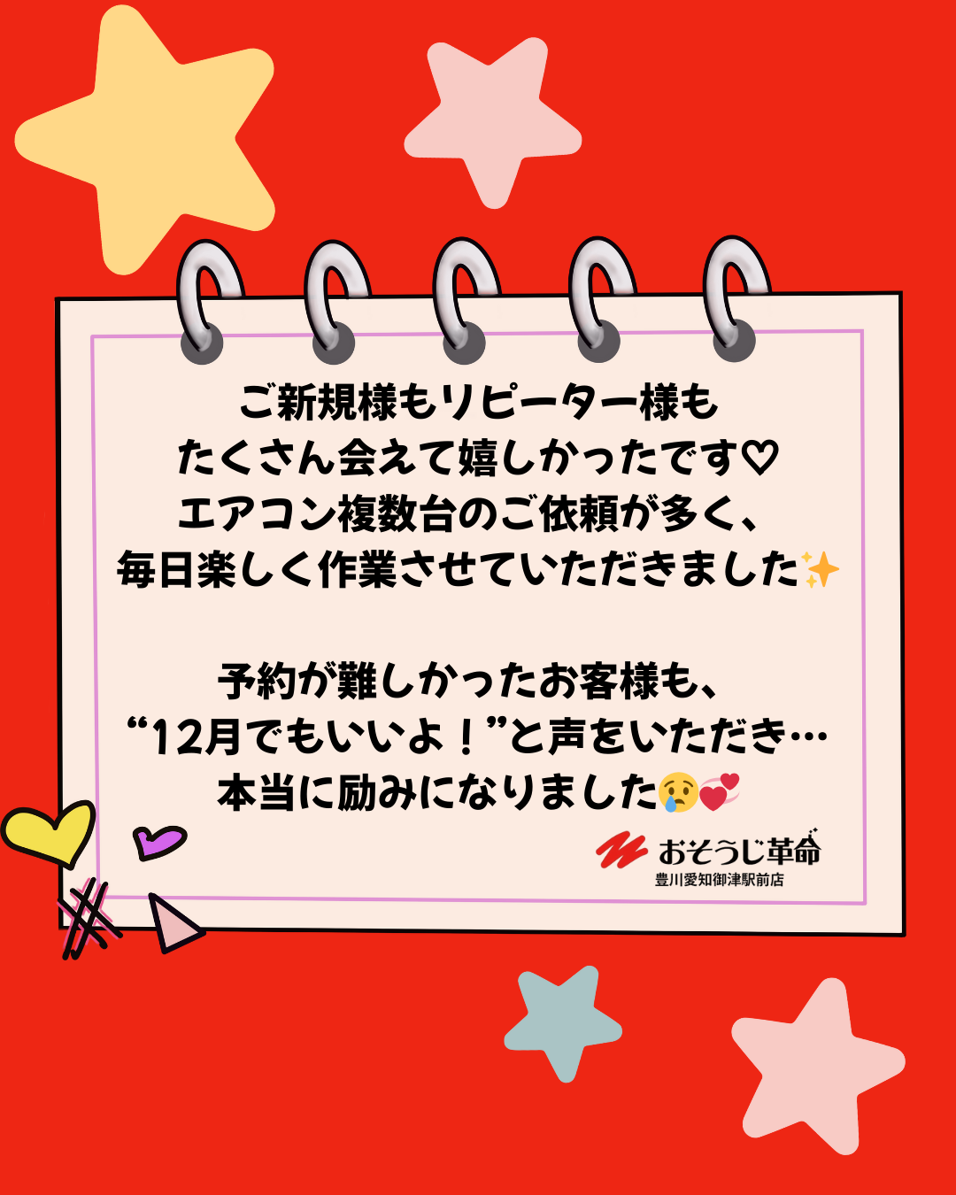 エアコン複数台のご依頼がとても多く、ご新規さま・リピーターさま、たくさんの方にお会いできて嬉しかったです♡