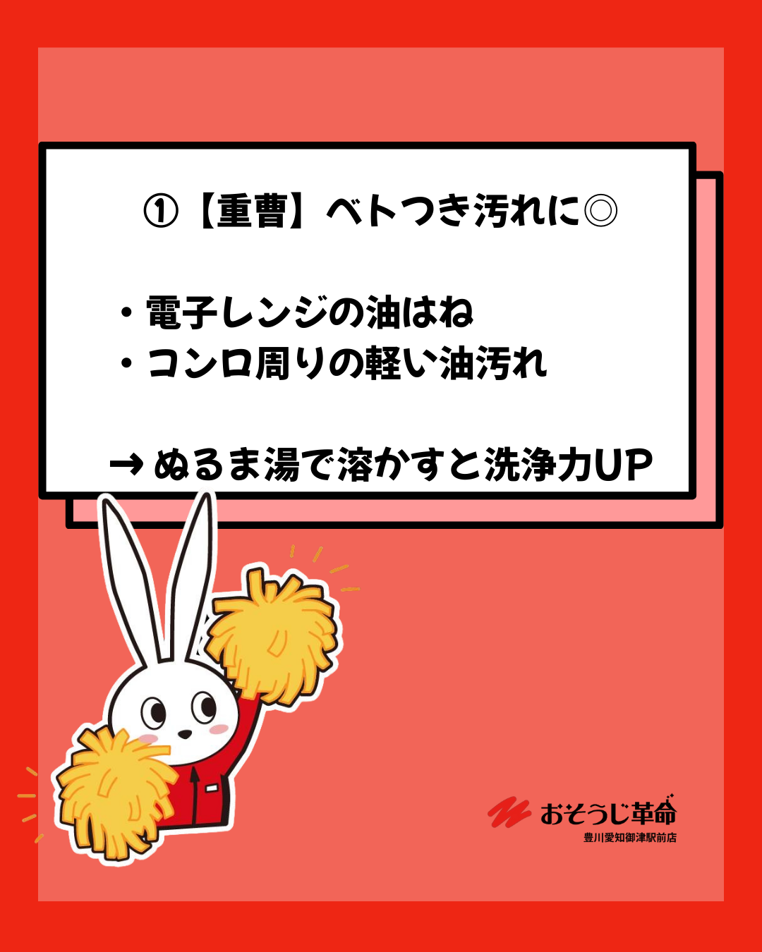 ①重曹 → 油汚れに◎