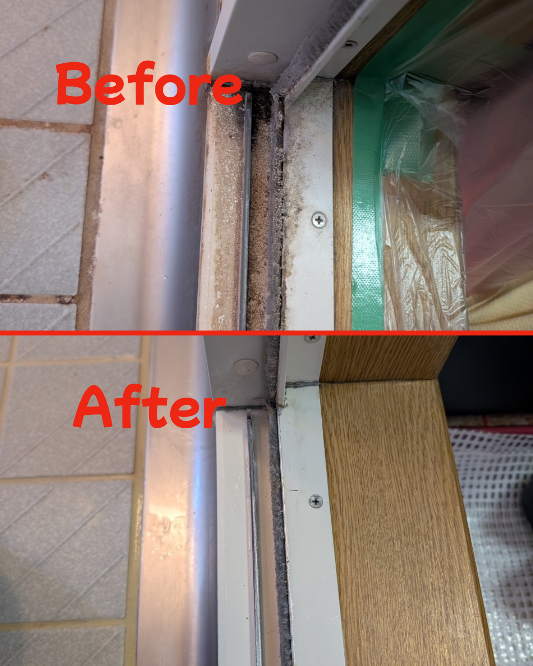 浴室ドア下レール清掃のBefore After