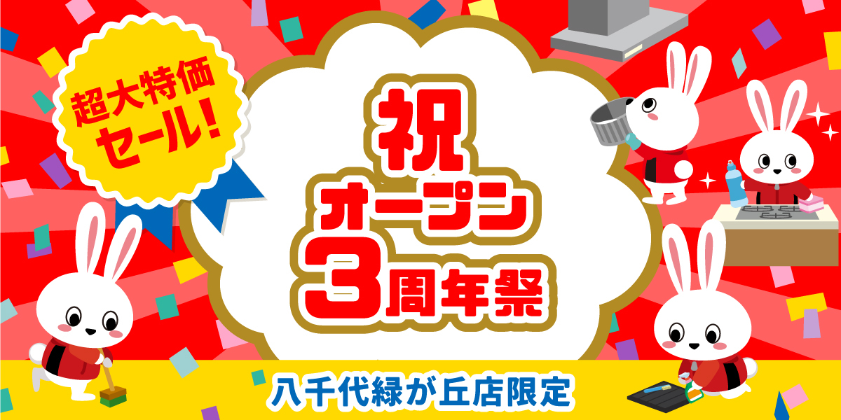 おそうじ革命 八千代緑が丘店では、オープン3周年祭を実施中!を実施中です!