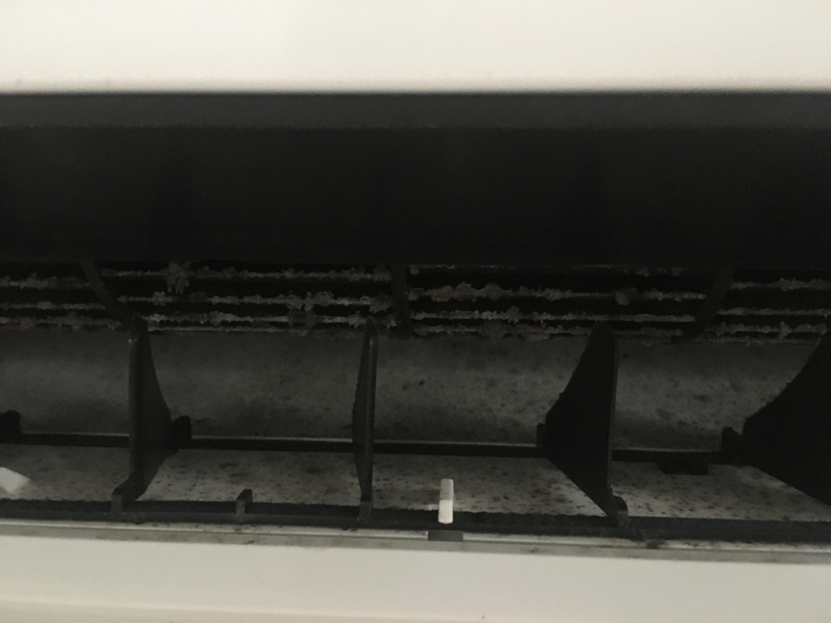 そしてそちらに設置して2年のエアコンとのことでしたが、熱交換器のホコリと吹き出し口のカビをキレイにいたしました!